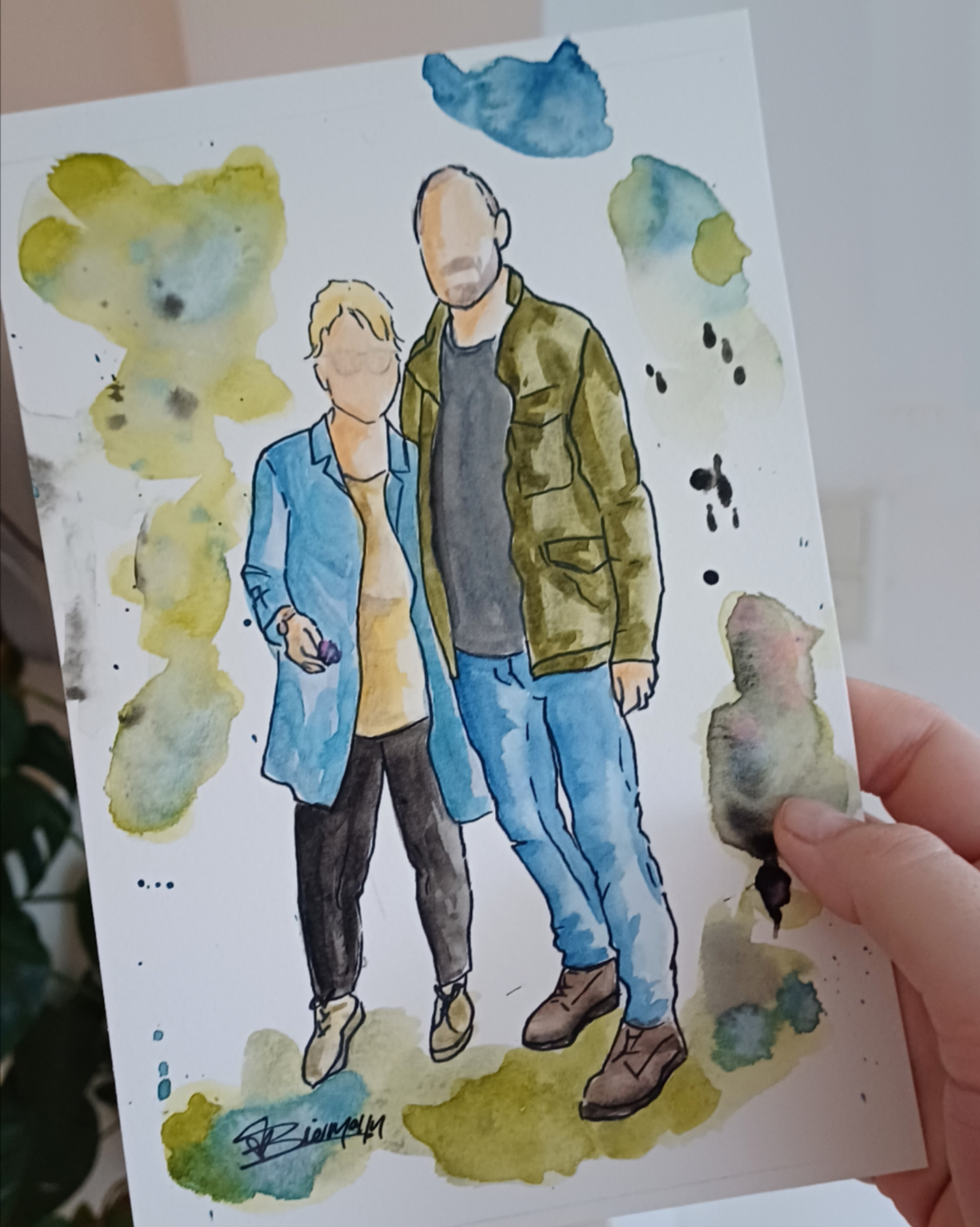 Die Bilder sind auf einem dicken 300g/m2 Papier gemalt, bei Wunsch lässt sich der Aquarellstil auch auf einen festen Keilrahmen anwenden.