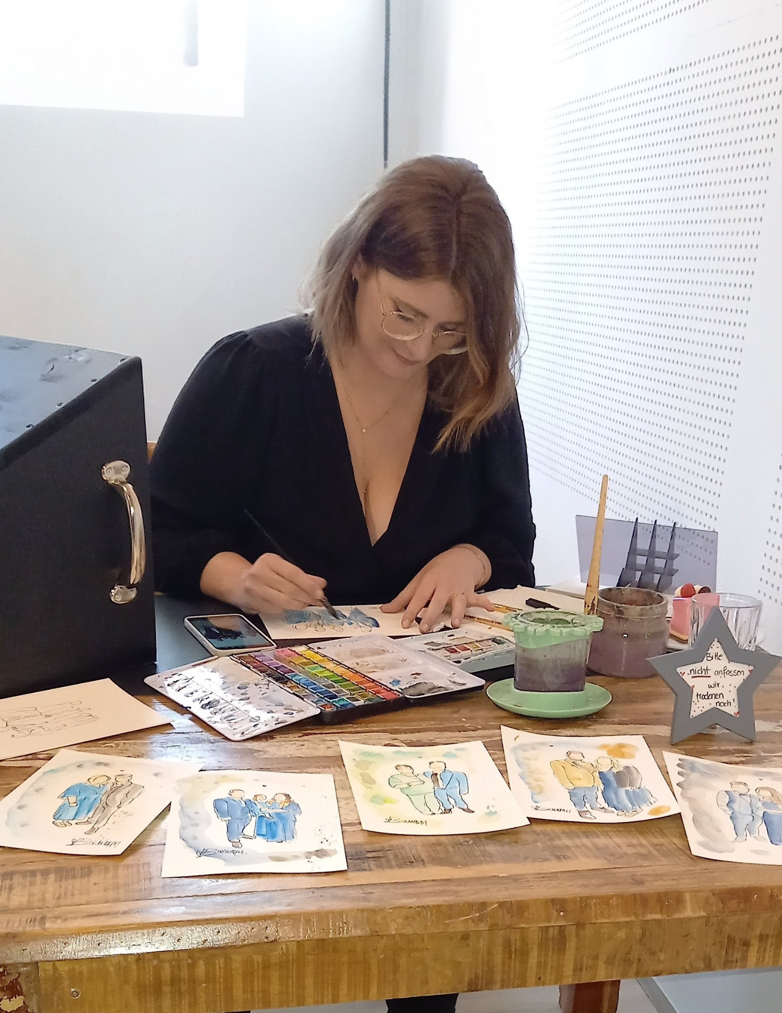 Falls du keine Veranstaltung geplant hast, aber auf den Geschmack gekommen bist und für dich und deine Liebsten gerne eine Illustration in diesem Stil haben möchtest, schau gerne im Menü unter "kleine Kunst & Geschenke" vorbei.